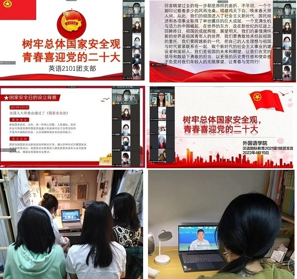 为全面贯彻落实习近平总书记提出的总体国家安全观,提高国家安全意识和保密观念,推动大安全理念深入人心、落地生根,4月中旬,外国语学院开展“树牢总体国家安全观,青春喜迎党的二十大”主题团日活动。