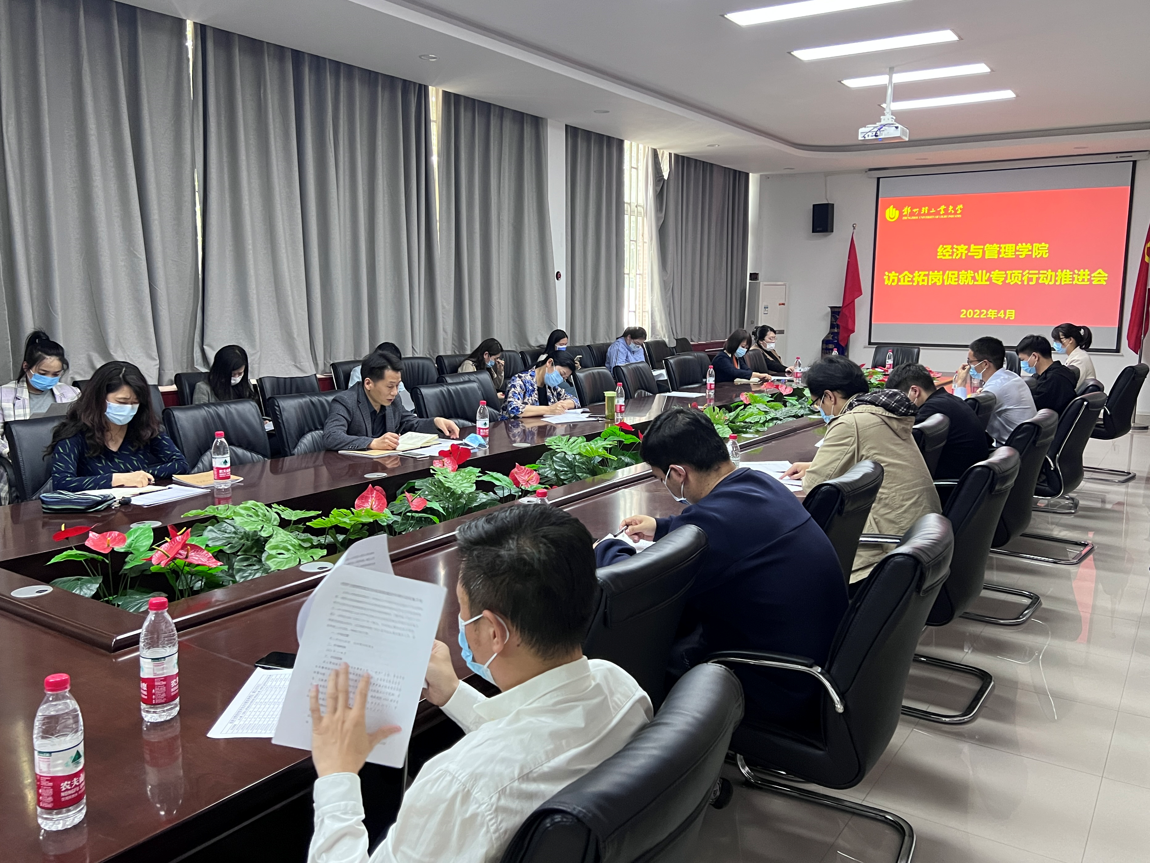 4月21日下午,经济与管理学院在经管楼116室召开访企拓岗促就业专项行动推进会。学院领导班子成员、系主任、毕业班辅导员、班主任及就业专职辅导员参加会议。会议由学院党委副书记陈章美主持。