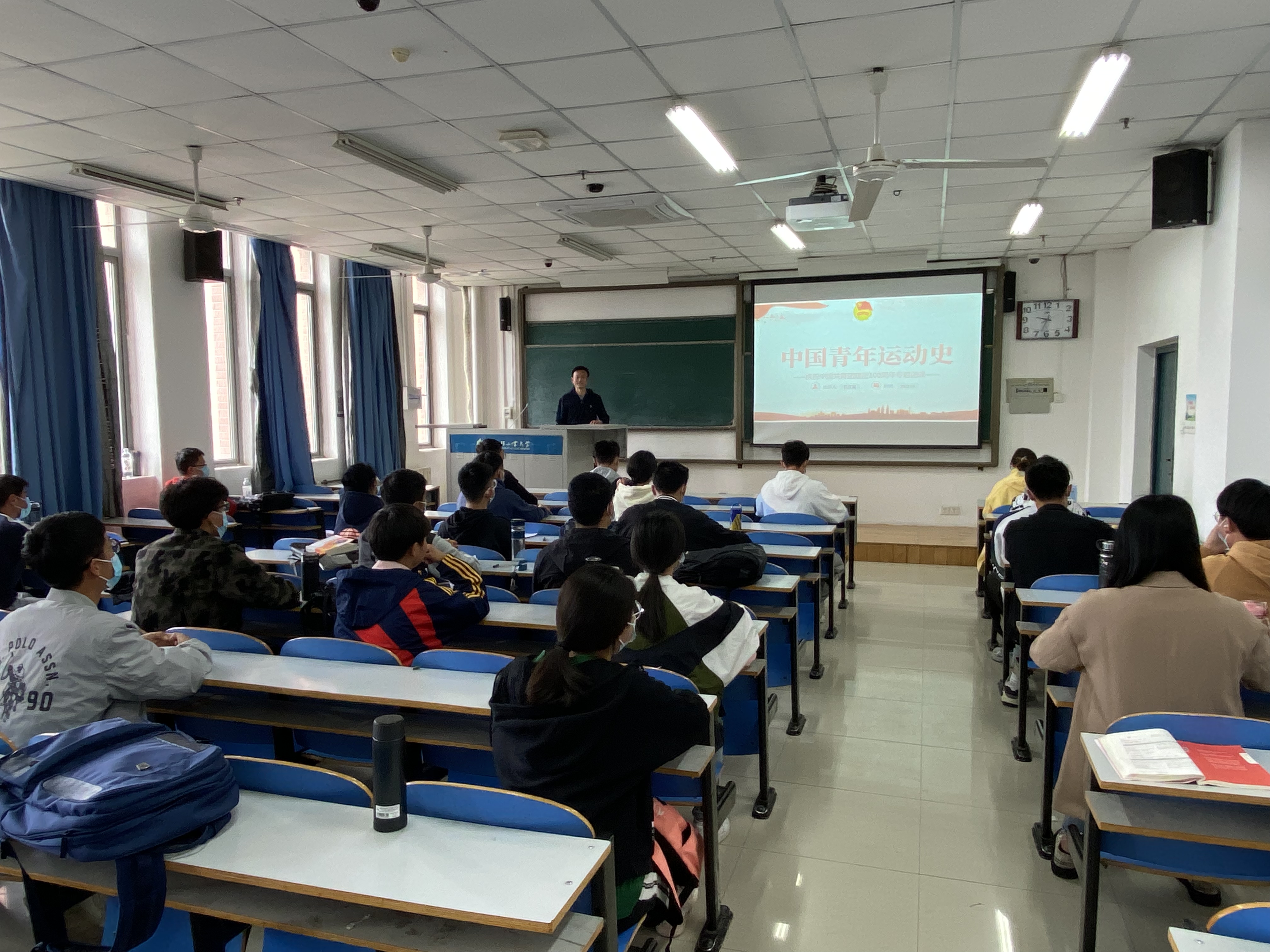为庆祝建团100周年,团结引领团员青年永远跟党走、奋进新征程,喜迎党的二十大,4月22日,体育学院在科学校区一教楼711开展了“党领导下的青年运动史”主题团课活动。本次团课由校青年讲师团成员、体育学院团委书记石庆福老师主讲,体育学院2021-2022学年团校学员参加了此次团课学习。