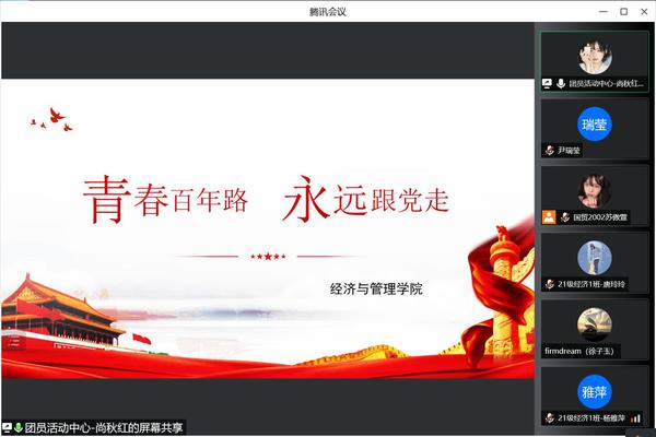 为迎接党的二十大胜利召开,深入学习贯彻习近平新时代中国特色社会主义思想,弘扬和传承五四精神,进一步进行爱党爱国教育,激励学院青年学生攻坚克难、开拓奋进。5月4日,经济与管理学院通过腾讯会议线上举办“青春献礼二十大,强国有我新征程”主题教育。