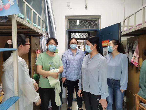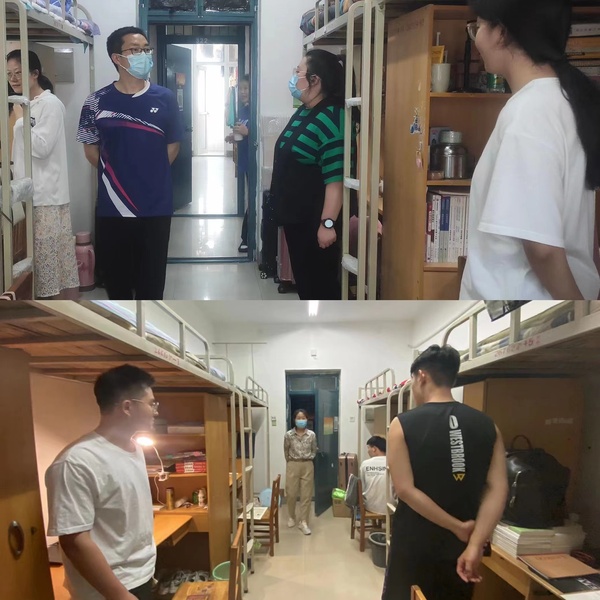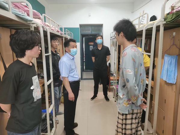 老师们深入学生宿舍与同学们亲切交谈,了解学生线上课程的学习情况、学习成效以及宿舍学习的相关问题等,希望同学们在疫情期间调整好线上学习状态,在学期末能有圆满的收获。刘珂院长关切地询问同学们在生活上、学习上的需求,叮嘱同学要规律作息、按时做好线上课程学习,做好个人卫生防护,勤洗手,勤通风,保持宿舍卫生整洁,提高个人健康防护意识。老师们和同学在交流过程中引导大家如何做好个人心理调适、健康生活,同时提醒宿舍长配合学校积极做好宿舍网格化管理,及时督促宿舍同学每日健康打卡和日常行为规范,要及时向同学们传达学校及上级网格长的各项疫情防控要求,关注宿舍同学的身体健康状况和心理动态。