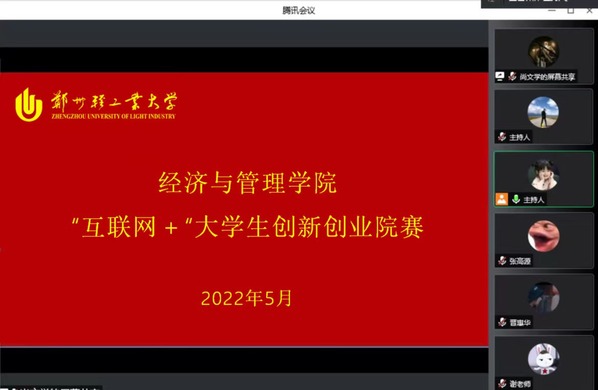 为深入贯彻落实《国务院办公厅关于深化高等学校创新创业教育改革的实施意见》等文件精神,进一步激发学院学生创新创业的热情,5月8日,经济与管理学院通过腾讯会议举办了2022年“互联网+”大学生创新创业大赛院级选拔赛。经济与管理学院王兴民、张卫宾、张省、谢芳、邢慧琼等创新创业指导教师担任评委。大赛由学院创新创业专职教师詹琦主持。
