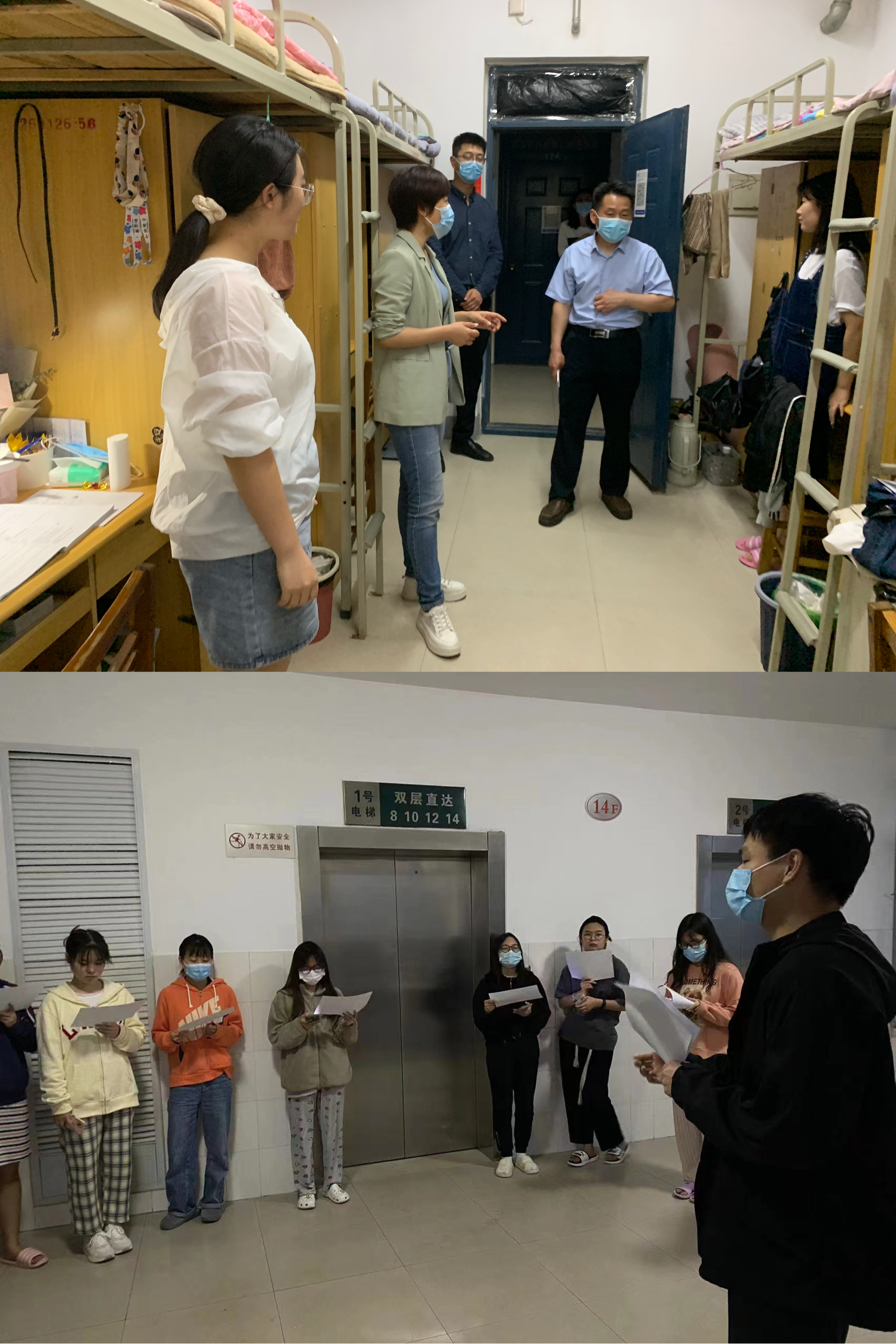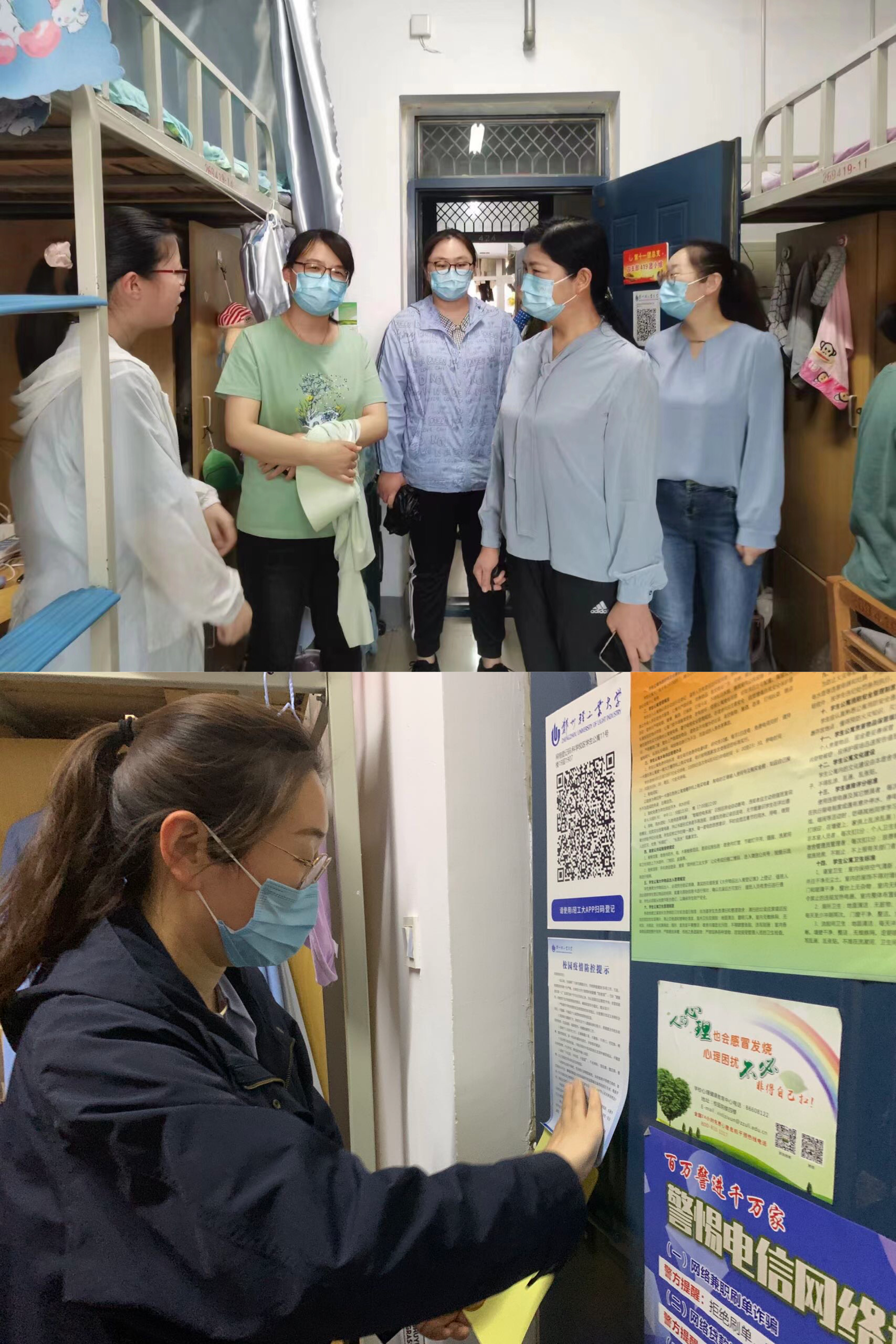 织密网格化疫情防控网。为从严从实从细抓好疫情防控工作,学院领导班子、专职辅导员第一时间入住学校,层层压实责任,构建学生宿舍网格化管理体系。通过每日不断线的宿舍巡查走访、信息报告,激活网格联动,严格网格监管,摸准学生底数,用实际行动织牢封闭管理网格化疫情防控网,合力筑牢疫情防线。辅导员还通过疫情防控安全警示教育主题班会,及时给学生解读疫情防控形势、传达校园疫情防控精神和措施,鼓励大家时刻紧绷“防疫弦”,共同守好校园安全屏障。广大师生党员坚守岗位,奋战一线,亮出本色,彰显责任担当。