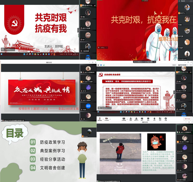 为深入学习习近平总书记关于疫情防控工作的重要讲话和指示精神,充分发挥团员青年的先锋模范作用,增强战胜疫情的信心和决心,5月10日—5月15日,食品与生物工程学院组织各团支部开展“共克时艰,抗疫有我”疫情防控主题团日活动。