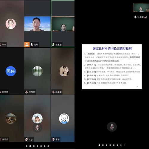 本次讲座紧紧围绕国家社科基金课题申报与学术研究主题展开。首先,杨蕙馨教授介绍了国家社科基金近年申报特点、评审情况、研究准备工作、选题原则、课题申请注意事项等要点;其次,在活页撰写方面,杨蕙馨教授提出应注重逻辑清晰、主题突出、层次分明、内容翔实、排版清晰、赏心悦目;最后,杨蕙馨教授从课题申报申请书撰写的选题依据、研究内容、创新之处、预期成果、研究基础、参考文献等方面逐条进行了详细指导。