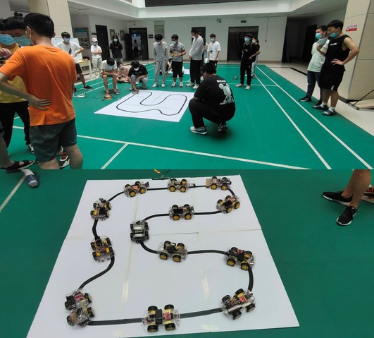 大赛分为制作组,循迹组和创意组三个类别。制作组参赛队员需要根据原理图独立完成焊接电路板,实现灯带的“流动”,电路元件布局合理美观;循迹组的参赛队员需要利用大赛主办方提供的“小车”编写程序,使其能够按照要求在赛道上根据轨迹运行。创意组同学则是将自己的科技类创新想法付诸实践,展示科技制作优秀项目。经过多次赛前培训、笔试筛选和比赛评定,最终制作组36名参赛队员、循迹组29支参赛队伍,创意组13支参赛队伍获得荣誉奖励。