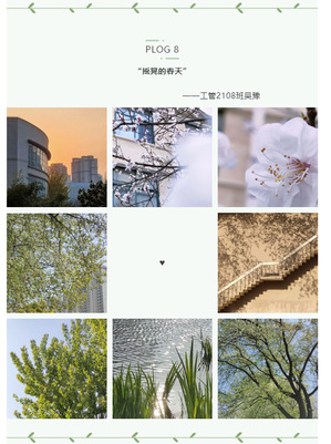 本次活动通过学生plog或者vlog的形式记录春色或校园生活,同学们用一组组美丽的图片、一段段优美的视频,用缤纷明艳的色彩淋漓地展现春日的美好。我们从镜头中看到同学们心中和眼中的和风煦日、云卷云舒、鸟语花香,亦或是错落有致的教学楼、步履匆忙的学生,在这些图片和视频中看到同学们发现春日校园中、生活中美好的一面和生机勃勃的春天。