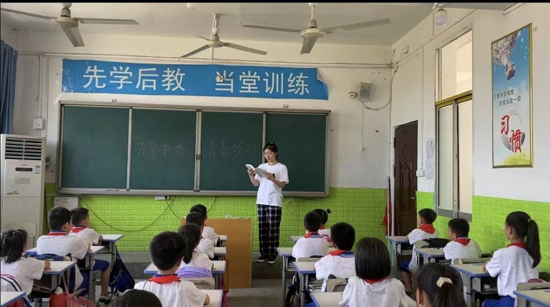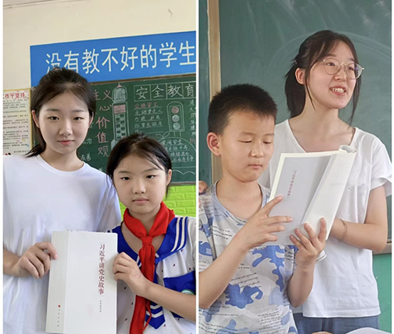 活动第二站,团队成员前往当地中小学与同学们共同阅读《习近平与大学生朋友们》。期间,对于小朋友们不理解的部分,团队成员使用童趣的语言,以小故事的形式讲解大道理,课堂整体氛围和谐融洽,同学们表示,“我们现在都是小树苗,是祖国的花朵,习爷爷的教诲我们记在心中,我们会努力学习,将来一定考上一所好大学,把自己的专业和国家的需要结合起来,通过自己的努力,让生活更美好、让国家更富强”。最后,团队成员以朋友的身份为小朋友讲解习近平总书记对未来青年的寄语,殷殷期许,滋润心田,习近平总书记的关怀在少年儿童的心中播下了希望的种子,鼓励他们砥砺前行。