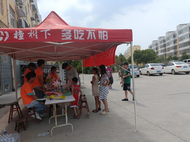 上午,小队成员陆续到达河南省延津县城关镇,并且进行集结,对活动流程、注意事项和场地进行安排部署。下午14时左右,小队成员进入社区,简单布置活动场所。于下午15时开展活动,在深入宣传和动员下,吸引了小区50多位家长和中小学生参与活动中。