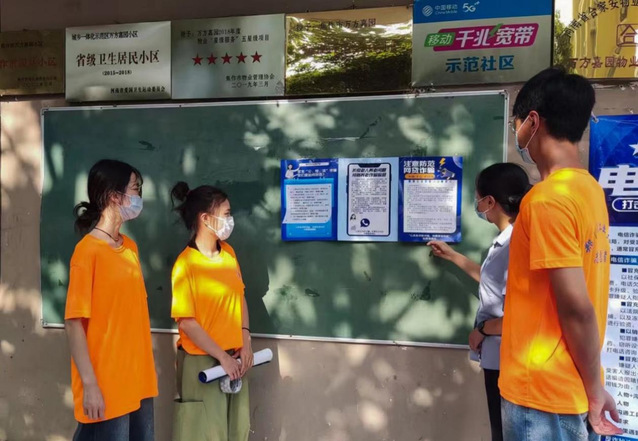 为有效提高社区居民们的反诈能力与防骗意识,守护好居民的“钱袋子”,郑州轻工业大学国际教育学院“心系反诈防诈、共建安全社区”志愿服务团队于 7 月 3 日至7 月 7日开展面向社区居民的反诈教育宣传活动。旨在通过此次反诈知识宣传,提高居民群众的防诈能力和防范意识,让防范电信诈骗进入社区,深入百姓心,形成全民动员、全民参与、共同抵制网络电信诈骗的浓厚氛围,营造良好的法制环境。