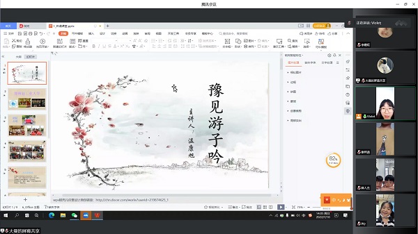 7月3日至9日,沈阳市的朱明垚同学、郑州市的温康旭同学、安阳市的崔家华同学、邯郸市的李雨欣同学、眉山市的王辉宏同学,纷纷在自己的家乡,以线上的方式组织起当地各个年龄段的群体进行吟诵的宣讲。