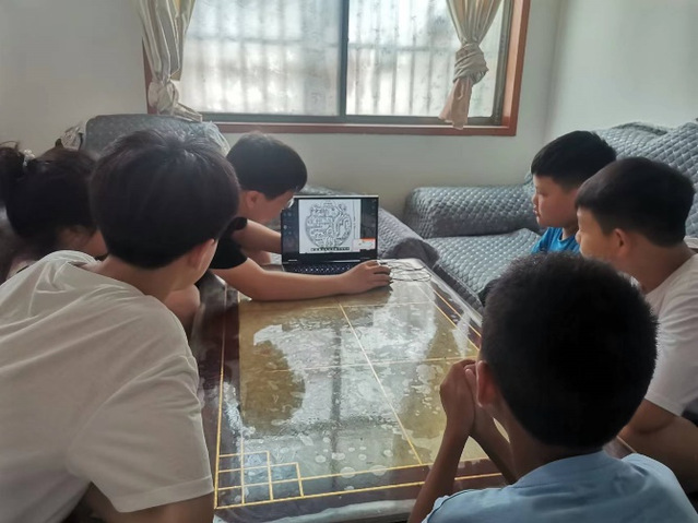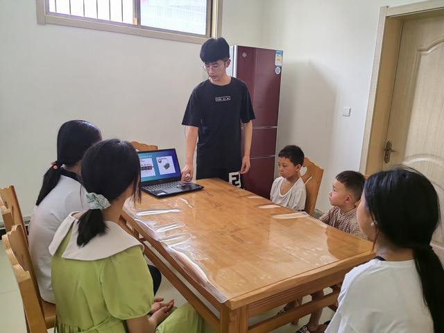 活动开始前,团队成员们认真进行专业技能培训,积极在家乡社区进行宣传,为活动的开展做充分的准备。活动中,小分队成员刘俊龙和杨帅文在各自社区通过PPT宣讲的方式,为孩子们展示科技创新作品,用简单通俗的语言讲解常用电子元件的基本功能,结合自身专业知识为孩子们介绍循迹小车、LED旋转陀螺的基本原理知识。