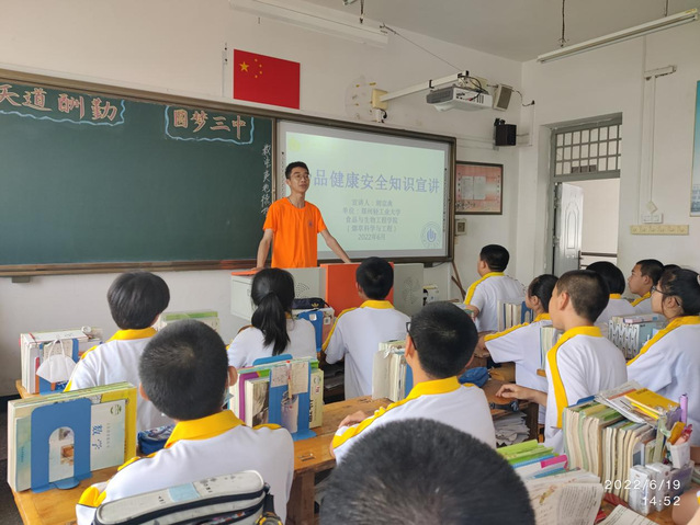 为响应国家乡村振兴战略,推动健康中国建设,关爱农村弱势群体,团队成员利用自身所学为乡村儿童科普食品安全知识,用实际行动传递青春正能量。