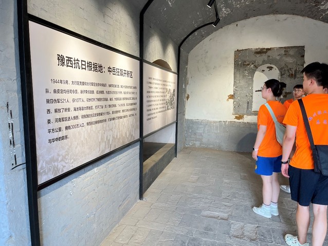讲解员带领师生党员代表到豫西抗日根据地广场,全体党员面向党旗重温入党誓词。随后,在纪念馆讲解员带领下对十余个展室进行了参观,缅怀革命先辈。纪念馆通过大量照片、文物、绘画和文字,再现了抗日战争时期进行的艰苦卓绝的抗日斗争,再现了豫西抗日根据地军民同仇敌忾、浴血奋战的恢弘历史画卷,在场同志在参观游览中,感受着革命先烈们不屈不挠、不怕牺牲的爱国主义情怀,是一次深刻的党性教育。