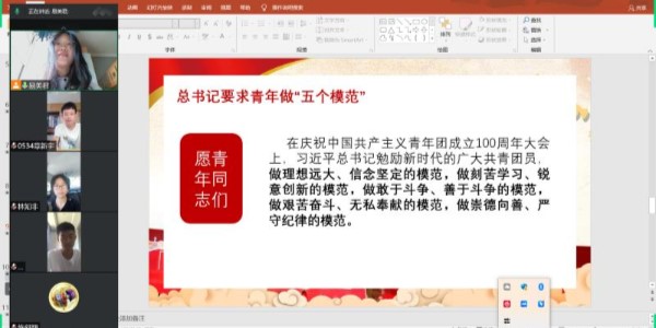此次团课理论宣讲实践活动充分利用网络资源,开放团课教学模式,依托腾讯会议等网络平台,通过团史视频播放,重温入团誓词等关键环节,让屏幕前的同学感同身受。