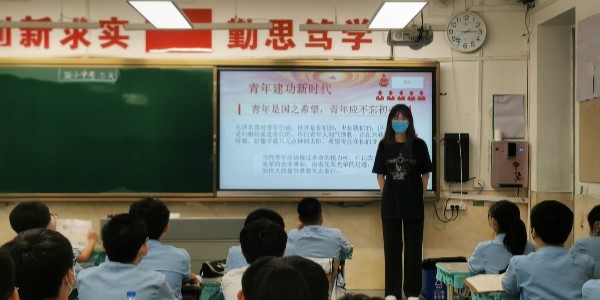 宣讲队成员回到初中母校,带领青少年团员们学习党领导下中国青年运动的百年历程。在宣讲过程中,孩子们聚精会神地注视着课件上的图片,感悟着革命先辈们的拳拳爱国心。宣讲队成员在团课的结尾,用通俗易懂的语言、生动的故事,讲述了青年英烈的感人事迹以及五四爱国运动、社会主义青年团的成立等历史事件,引发了大家强烈的情感共鸣。