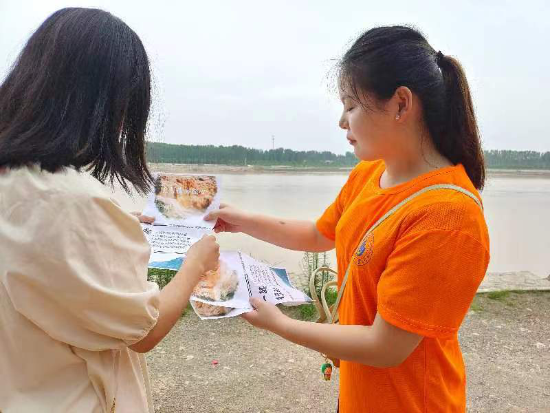 聊城被誉为“江北水城”,黄河水养育着600万聊城人民。“黄河战略”的深入实施,给聊城带来了千载难逢的发展机遇。7月15日,“黄河情·环保心”河小青志愿服务队的队员来到山东聊城东阿黄河国家森林公园开展实践活动。队员们首先来到黄河岸边实地考察,在与前些年相关资料对比发现黄河水质有所提升,在聊城黄河边土生土长的一位队员喜悦地说道:“水更清了,水上肉眼可见的漂浮物也明显少多了!”在活动中,队员们向景区游客发放环保宣传单,让更多游客了解保护黄河环境的重要性并呼吁大家都要行动起来,共同保护母亲河,共筑环保家园。最后,实践队员们又在工作人员的带领下前往黄河文化展览馆,了解黄河流域文明发展、水患治理、生态保护等历史变迁,窥见聊城全力以赴抢抓战略机遇,积极主动践行黄河战略,紧抓生态保护和高质量发展,在百里沿黄岸边奏响“黄河大合唱”的聊城乐章。队员闫欣茹在分享自己感悟的时候说到:“黄河自古以来就是中华民族的母亲河,是华夏文明的摇篮。通过‘黄河情.环保心'志愿活动让我认识到不仅要当好黄河的宣传者,更要当好保护黄河的践行者和监督者,并以黄河文化推动黄河流域生态保护,讲好黄河故事,呼吁更多的青年志愿者投入到黄河文化的宣传和环境的保护中”。