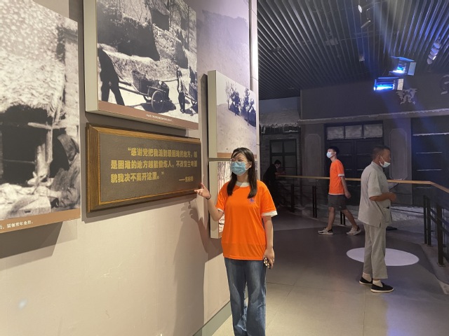兰考县展览馆位于兰考文化交流中心内,毗邻焦裕禄干部学院。小分队成员来到兰考县展览馆,首先映入眼帘的是气势恢宏的《念奴娇·追思焦裕禄》,该篇是习近平总书记为焦裕禄同志的题词。“生也沙丘,死也沙丘,父老生死系。暮雪朝霜,毋改英雄意气……”讲解员带领大家领读该词,让大家在字里行间中感受焦裕禄同志艰苦奋斗、无私奉献”的伟大精神。队员们读后都颇受震撼,虽然焦裕禄同志已经离开我们很久,但焦裕禄精神永恒永远都激励我们求真务实、开拓进取。讲解员说:“在全面深化改革、建设小康社会、实现中华民族伟大复兴的历史进程中,尤其需要学习和继承焦裕禄精神,时刻不忘党的宗旨。”