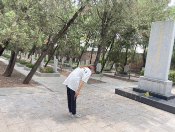 实践队员孙懋喆来到沧州烈士陵园缅怀革命先烈。在这里,实践队员看到纪念碑碑身北侧刻有“青沧战役纪念碑”毛体描金字,碑身南侧刻有青沧战役碑文。认真阅览了青沧战役展览馆收藏珍贵历史照片和图片159幅,学习了张隐韬、赵博生、黄骅、马本斋、李桐铭和牛氏三杰八名烈士的生平事迹。通过学习,实践队员受到了深刻的爱国主义教育,“春风送花表哀思,青松滴翠寄深情。无限哀思无限情,英雄墓前祭英雄”,瞻仰着高大的烈士纪念碑,表示作为新时代大学生,要为实现中华民族伟大复兴的中国梦贡献青春力量。