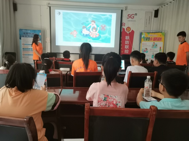 “小朋友们,你们知道溺水的常见原因有哪些吗?”政法学院志愿者话音刚落,台下的孩子们就纷纷举起手来抢答问题,这是安全知识宣讲环节的现场剪影。暑期是溺水事故高发期,为了增强孩子们的安全意识、杜绝溺水事故的再次发生,志愿者开展了防溺水儿童自护教育。志愿者们通过PPT展演、播放防溺水动画视频、讲解生动案例、主题绘画等方式,为孩子们讲解了溺水的常见原因,引导孩子们掌握遇到溺水事故正确施救和自救的方法。志愿者与孩子们大手牵小手,共同拉起暑期防溺水的“泳游圈”。