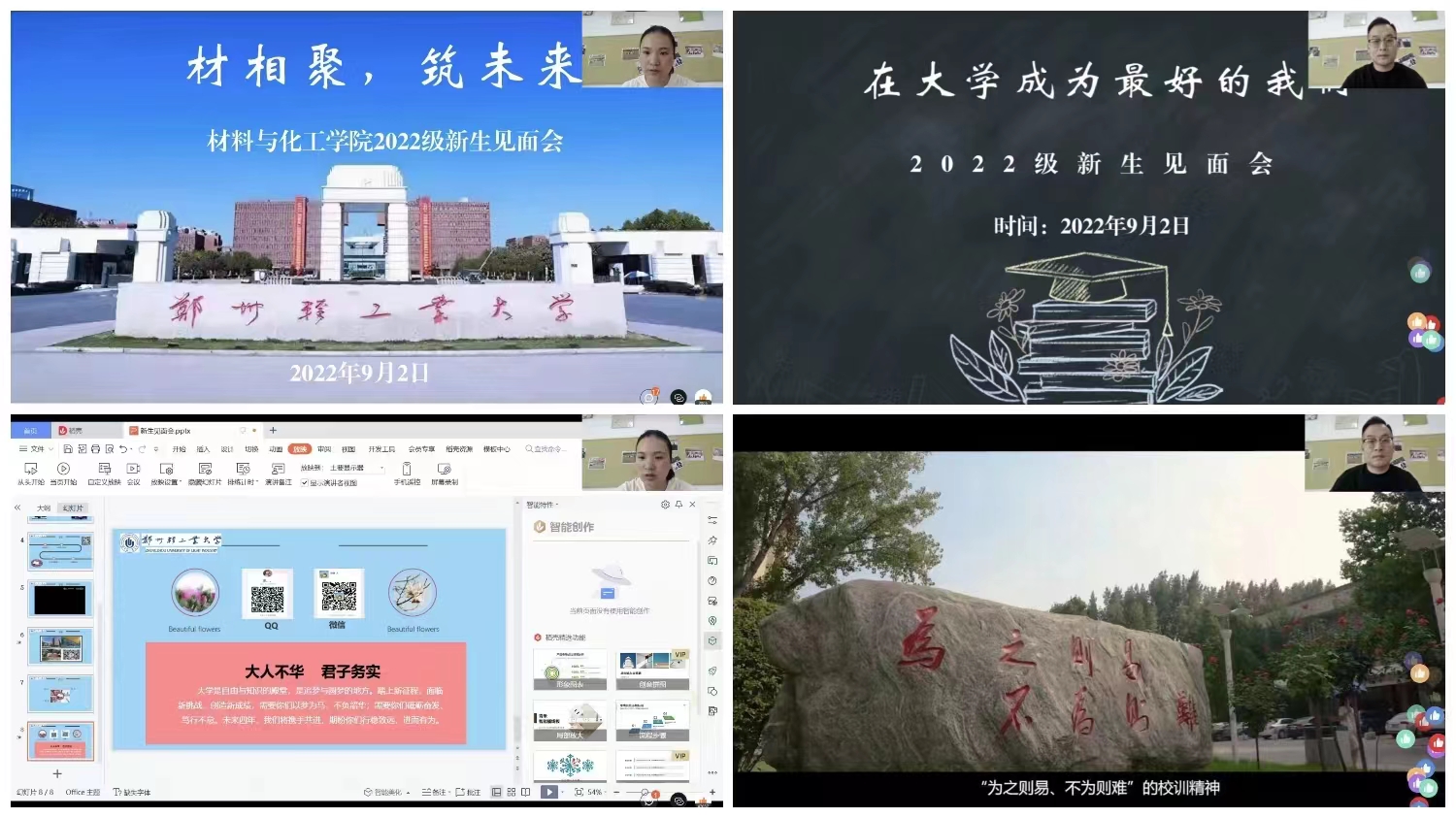 为扎实做好2022级新生网上报到及线上学习等相关工作,增进新生对学校、学院的整体认识,2022年9月2日,材料与化学工程学院新生辅导员分班级召开“材相聚 筑未来”云班会。