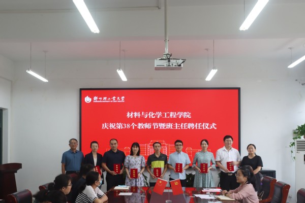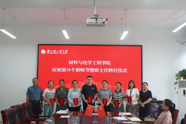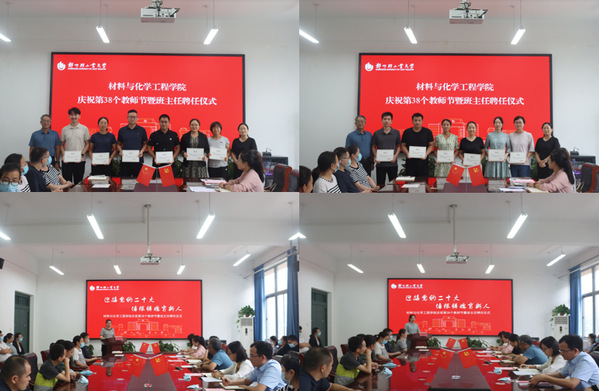 栉风沐雨秉初心,砥砺奋进续华章。9月8日下午,材料与化学工程学院在化工楼222举办庆祝第38个教师节暨班主任聘任仪式。学院领导班子、各系中心主任、各支部书记、2022级班主任及受表彰的教师代表参加了此次仪式。本次活动由学院党委副书记司丽娜主持。