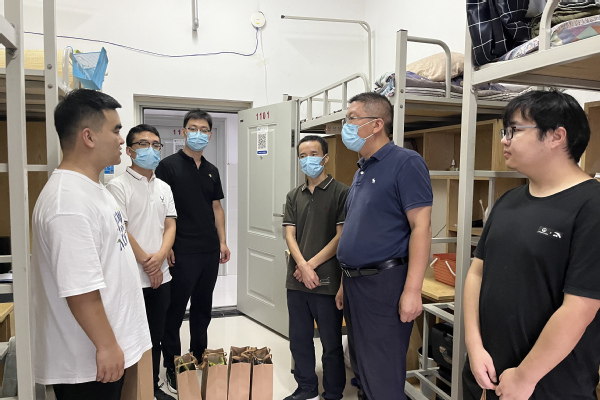 走访过程中,领导老师向在校学生送上节日问候和祝福,亲切地询问了同学们的返校情况、暑假期间的生活学习情况和近期的学习安排;向同学们传达了宿舍搬迁方案,认真听取了同学们关于搬迁的意见和建议,对大家关注的往返交通、就餐等问题进行了解答,并表示学院关注研究生学习生活环境,将帮助同学们解决困难,营造良好学生生活氛围。并叮嘱同学们认真落实学校各项疫情防控政策,严格按照要求落实三天两检,做好个人防护,为新学期的学习做好充分的准备。