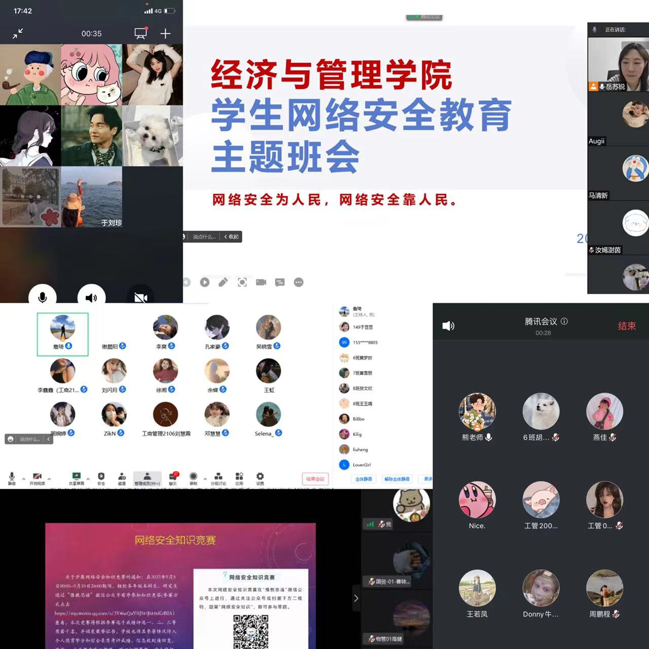 为深入学习贯彻习近平总书记关于网络强国的重要思想,大力宣传国家网络安全工作取得的重大成就,有效提升青年学生网络安意识和防护技能,共同营造清朗网络环境,9月7日-9日,经济与管理学院各年级各班召开了网络安全教育线上主题班会。