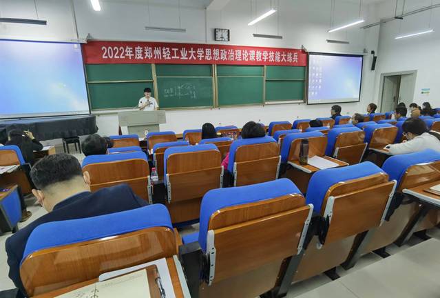 大练兵为期两个月,共分为两个环节。第一环节,马克思主义学院深入宣传动员,组织全体专兼职思政课教师以教研室为单位分课程进行了五场大练兵,做到人人练、人人讲、人人评,大家共同交流切磋、学习提高。第二环节,在第一轮大练兵基础上,各教研室充分发挥教学团队和教学经验丰富的老教师的传帮带作用,积极开展集体备课、集体研讨,推选出15名优秀教师进行教学展示。大练兵决赛阶段于4月22日、4月28日分两场举行。15名思政课教师依次上台,授课展示。参赛教师围绕“弘扬伟大梦想精神”“技术为什么救不了清王朝——洋务运动失败的原因及启示”“辩证看待人生矛盾,树立正确的义利观”等主题,运用多媒体技术,深入讲解了各知识点的历史逻辑、理论内涵和实践要求,展示出了扎实的学科功底、娴熟的教学技能和良好的教学效果。