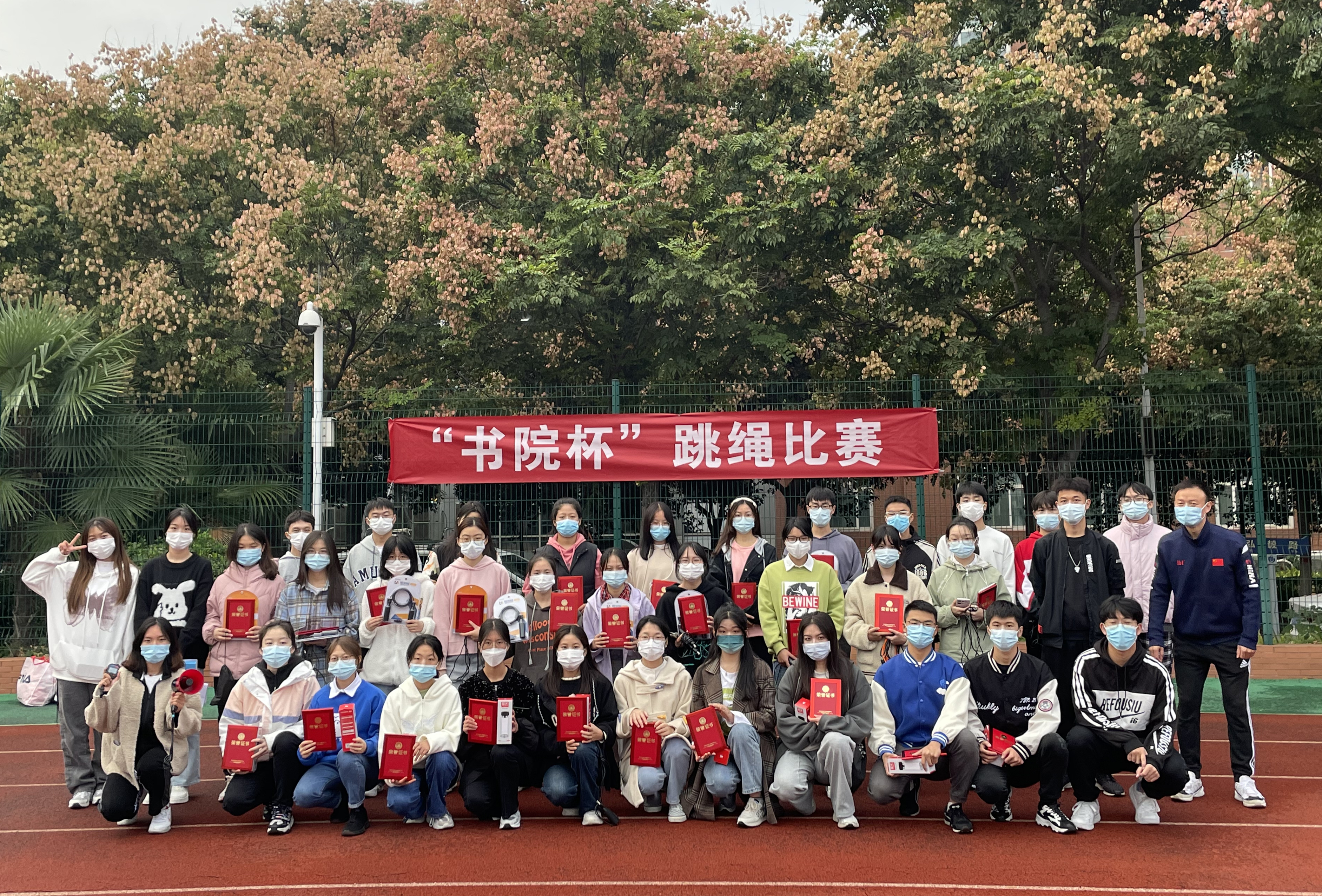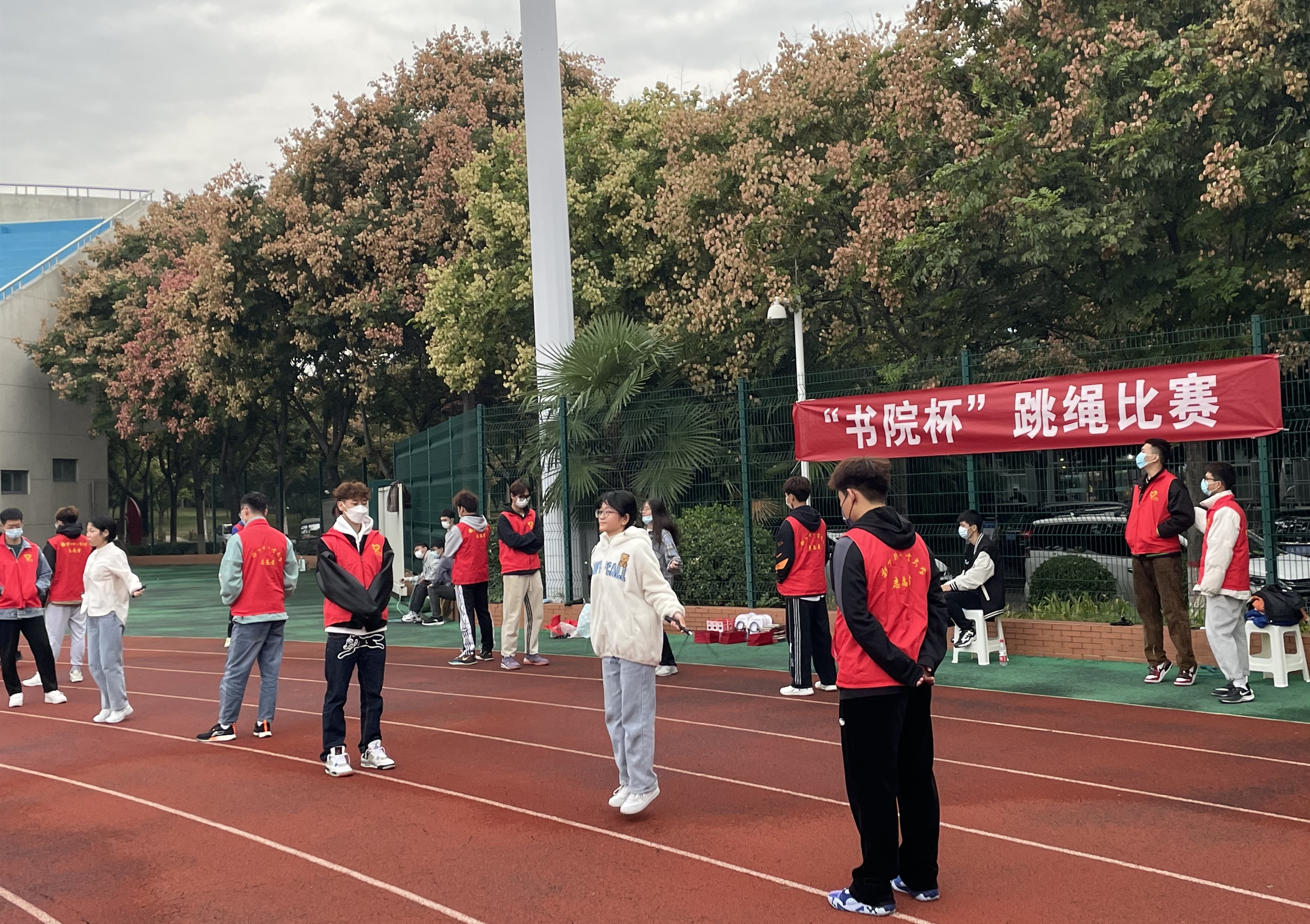 喜迎二十大,欢度国庆节。10月6日,三实书院在科学校区田径场举办了2022年“书院杯”秋季跳绳比赛决赛。