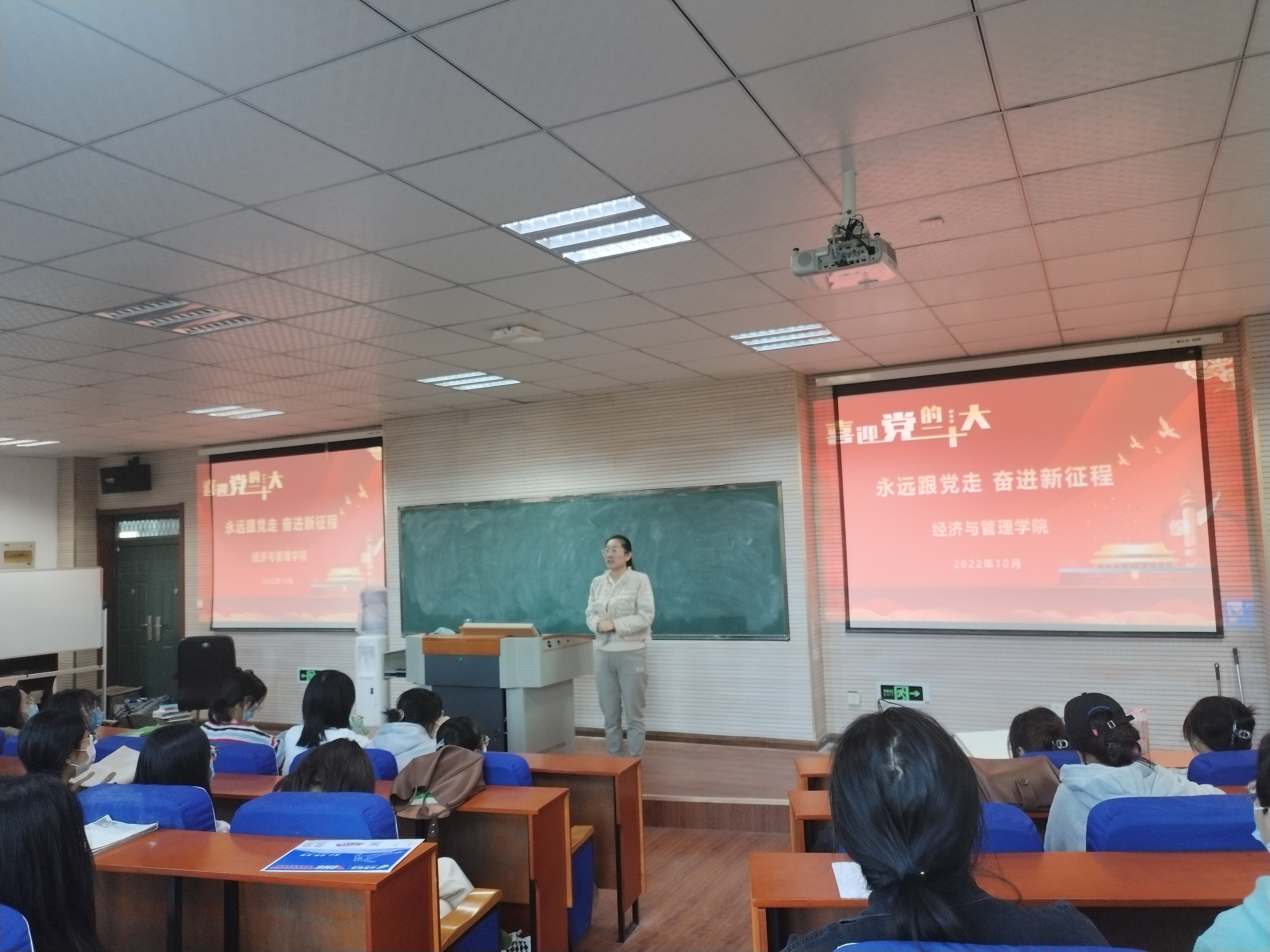 为引导学院学生增进理解“两个确立”的决定性意义,引导青年增强做中国人的志气、骨气、底气,永远跟党走,奋进新征程,经济与管理学院组织学院青马班和团学代表于2022年10月10日16:30在经管楼311举办《喜迎二十大,永远跟党走,奋进新征程》主题宣讲活动。
