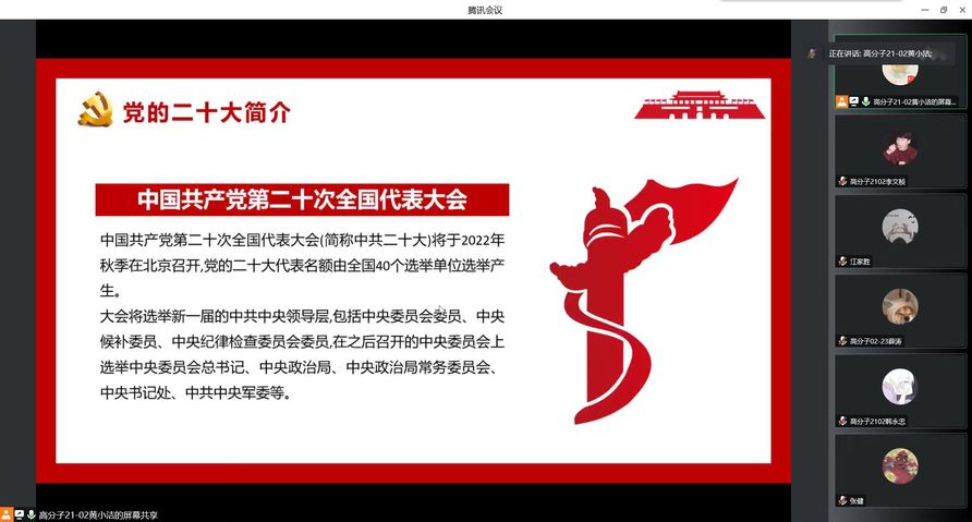 思想之道领航向,人间正道开新篇。通过本次“青春献礼二十大,强国有我新征程”主题团日活动使我院的青年团员们更加坚定了听党话,跟党走的思想觉悟,材化青年必将谨记习近平总书记的话语并秉持“赶考”般的清醒和坚定,时刻保持“斗罢艰险又出发”的顽强意志,为全面建设社会主义现代化国家和新时代中国特色社会主义贡献自己的力量。