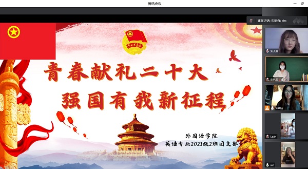 为深入学习党的二十大精神,引领广大团员青年听党话、跟党走,10月16日-10月30日,外国语学院各班级团支部陆续开展“青春献礼二十大,强国有我新征程”线上主题团日活动。
