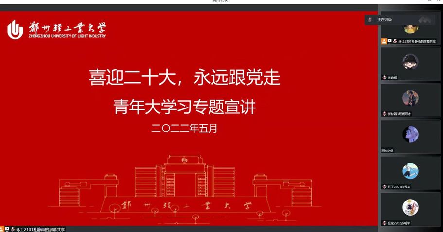 为深入贯彻落实习近平总书记关于青年工作的重要思想,迎接党的二十大,庆祝中国共产主义青年团成立100周年。材料与化学工程学院于五月四日线上开展了“喜迎二十大 永远跟党走”青年大学习宣讲,帮助同学们深入学习贯彻习近平新时代中国特色社会主义思想,弘扬和传承五四精神。