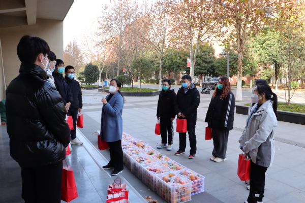 在考研慰问活动中,学院为每一位考研学子送上了“考研暖心加油包”,为即将奔赴考场的莘莘学子加油助威。精心配备的考研加油包里有橙子、苹果、旺仔牛奶、考研祝福贺卡等物品。常书记询问了考研学生复习备考的相关情况,表达了对大家的关心和关爱,并表示学院将始终坚持以学生为中心,不断完善服务保障,全力为考研学生保驾护航。并鼓励考研学子要有朝着目标努力奋斗的信心,要有沉着迎接各种考验和挑战的决心,要有合理作息、战胜自我的恒心,并相信同学们一定会收获属于自己的成功。考研学生纷纷表示,学院的关爱是对他们最好的鼓励,在接下来的学习中将带着学院和老师的期望加倍努力,以优异成绩回报学院。