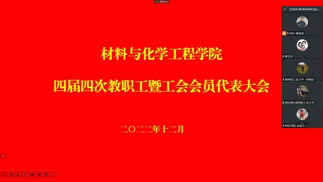 2022年12月29日下午,材料与化学工程学院召开四届四次教职工暨工会会员代表大会。学院工会教职工代表参加了会议。会议由学院党委书记常亮主持。