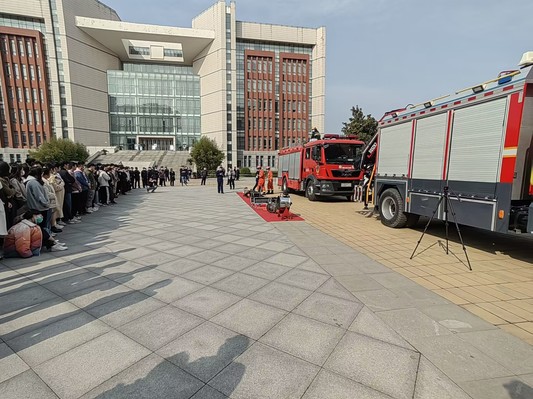 3月2日下午,高新区消防救援大队应我校保卫处、实验室与设备管理处及后勤保障服务中心的邀请,在科学校区逸夫图书馆南广场对我院师生开展实验室安全应急演练。