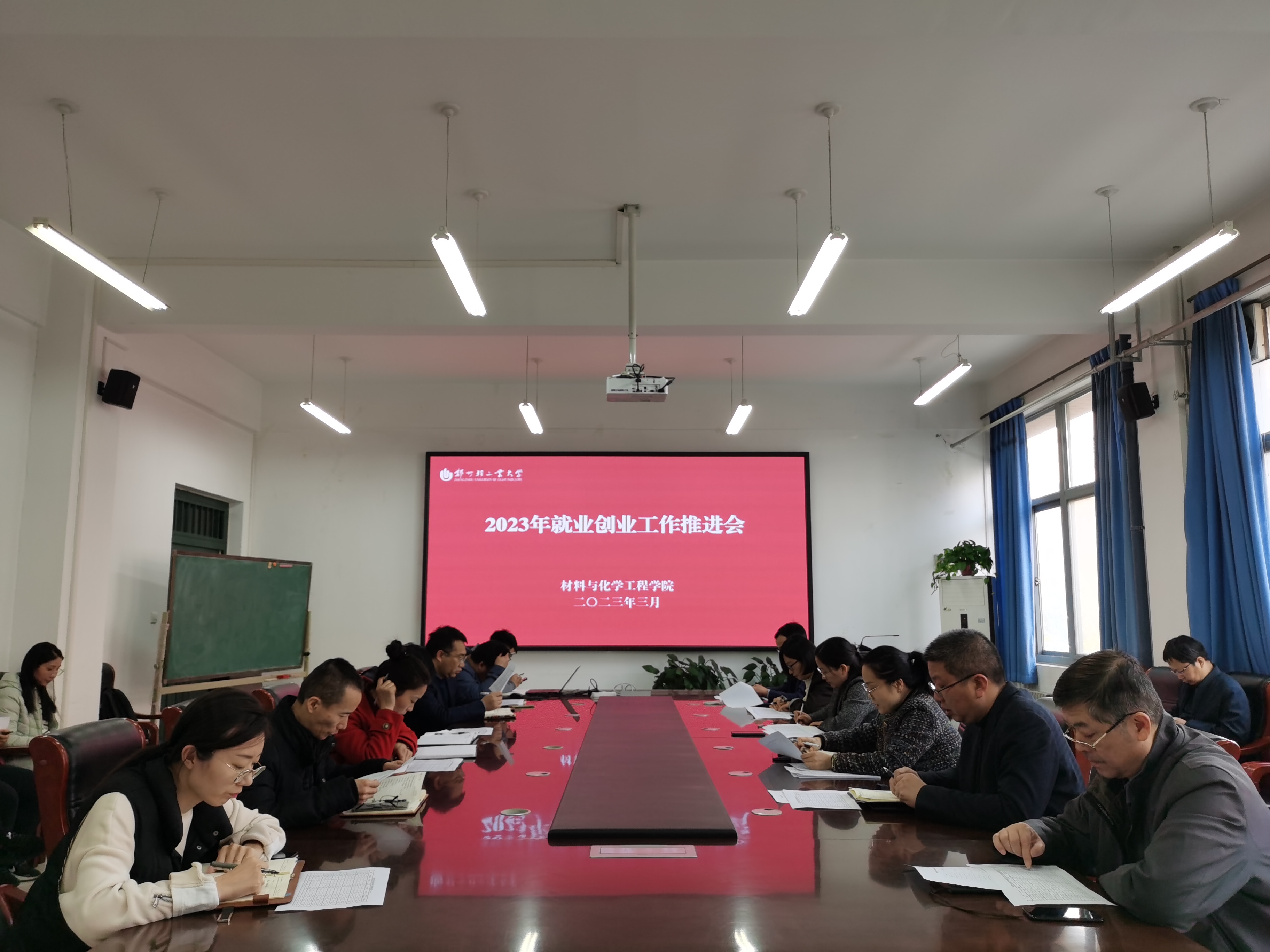 为进一步做好2023年就业创业工作,近日,材料与化学工程学院在化工楼222会议室召开就业创业工作推进会。学院全体领导班子、各系主任及毕业班班主任、辅导员参加了会议。会议由学院党委书记常亮主持。