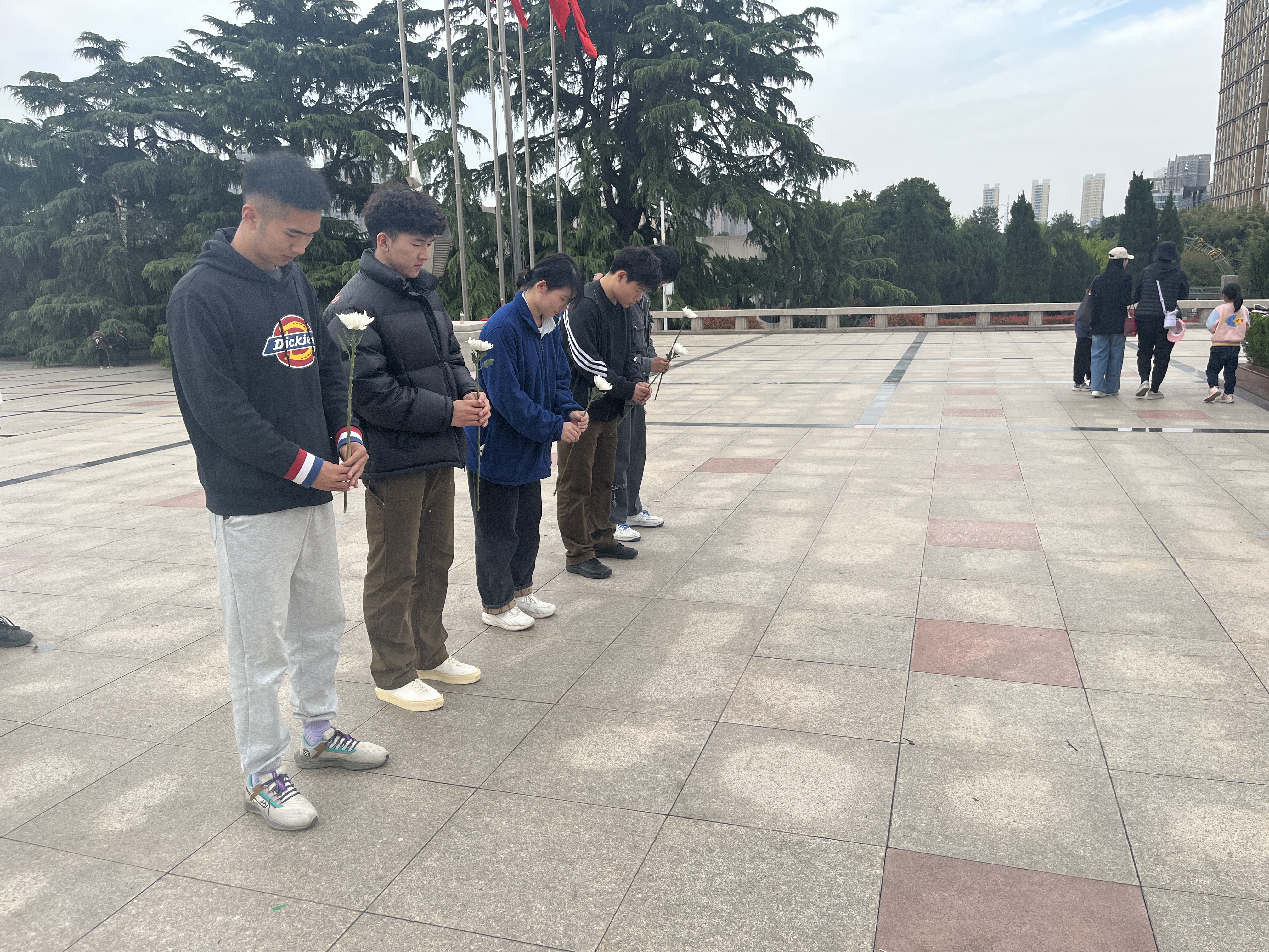 到达郑州市烈士陵园后,满怀着对革命先烈们的崇高敬意和深切悼念之情,同学们默默地在烈士纪念碑前伫立,向为民族独立、人民解放和国家富强、人民幸福英勇献身的烈士默哀。默哀毕,大家手持花束,缓步走向烈士纪念碑,为先烈献花。同学们缓步绕行,瞻仰烈士纪念碑,表达对革命先烈的深切缅怀。随后,同学们来到革命烈士纪念馆,了解了中原英烈纪念馆的由来以及各位英烈和中国共产党之间的不解之缘,并回顾了我党发展历程,学习了革命先烈为了新中国的成立慷慨献身、舍生取义的诸多事迹,深刻地理解了先烈们为了新中国成立和民族富强做出的牺牲和奉献。