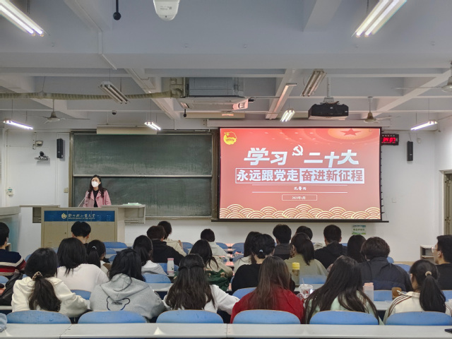 为深入学习宣传贯彻党的二十大精神,进一步加强对青年大学生骨干的思想政治引领,推进学院青年马克思主义者培养工程,4月25日,机电工程学院在西三楼400开展“永远跟党走,奋进新征程”党的二十大精神专题宣讲会。本次活动由校青年讲师团成员、院团委书记孔馨雨主讲,学院各年级学生干部、“青马工程”学员代表参会。