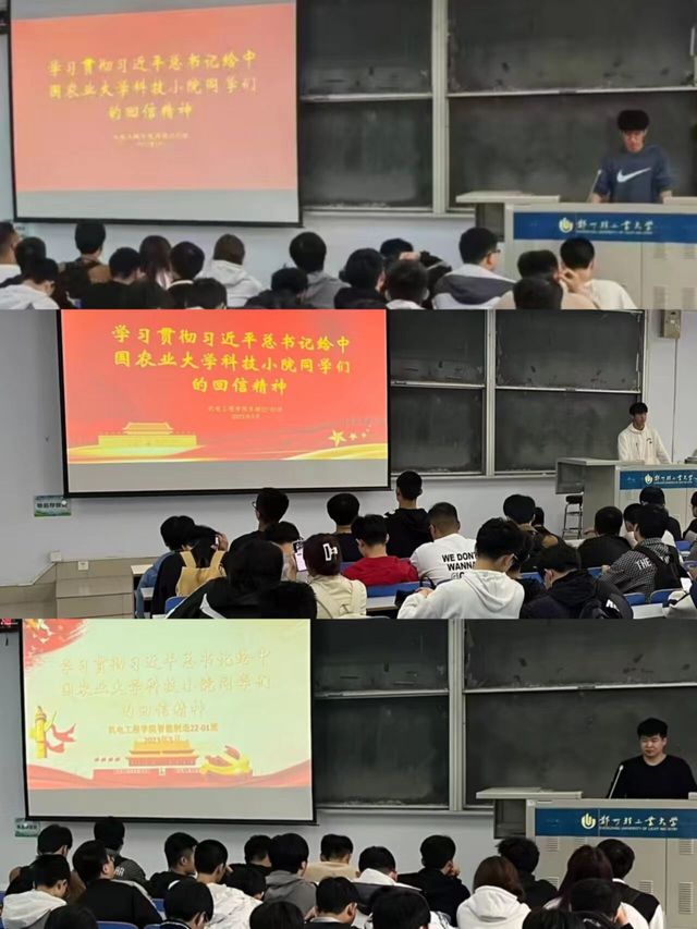 活动中,各团支部通过理论学习、视频观看等形式,认真学习了《习近平总书记给中国农业大学科技小院的学生的回信》内容,深刻领悟了习近平总书记的回信精神。回信引发青年热议,同学们纷纷表示会牢记习近平总书记的嘱托,志存高远、脚踏实地,走进乡村、深入基层,厚植爱农情怀,练就兴农本领,立足专业特长,学有所思、学有所用,将专业所学运用到社会实践中,在乡村振兴新征程上展现新作为,注入新活力!