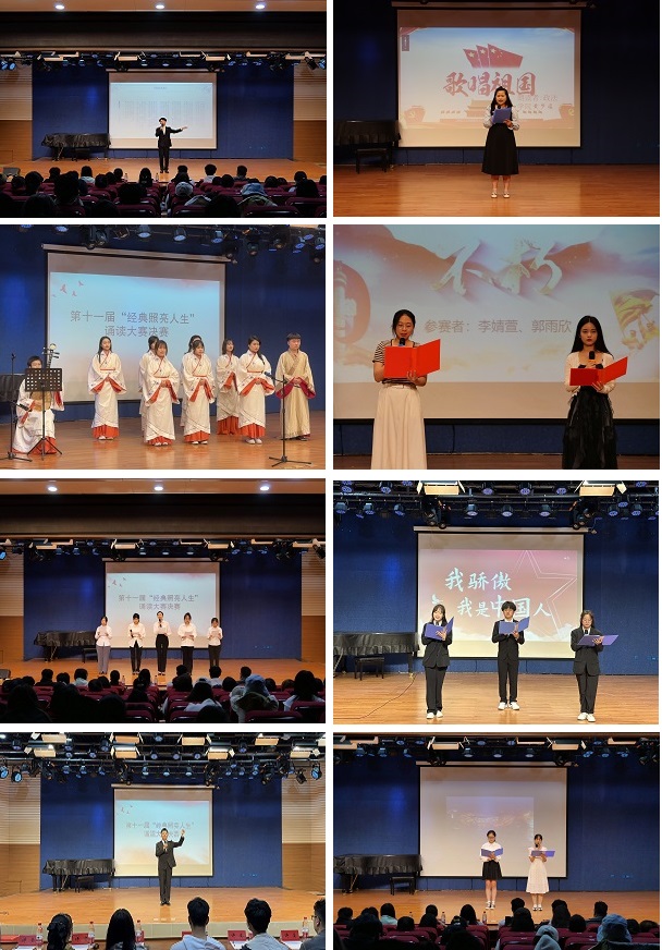 选手诵读形式多样,有个人独诵、集体诵读等,并在诵读过程中配以音乐,穿插乐器演奏和吟唱。食品与生物工程学院带来的《青春》和《强国力量》让我们感受到了青春的蓬勃力量,以自豪之情表达了对祖国的无限热爱与祝福;伴随着琵琶跳动的音符,身着汉服的外国语学院吟诵社成员用一曲《游子吟》歌颂了母爱的伟大与无私,表达了对母亲深深的爱与尊敬;艺术设计学院带来的《红岩》重拾峥嵘岁月里的记忆,描绘了火烧渣滓洞的悲壮、血染松林坡的惨烈,重温革命历史情怀;政法学院带来的《歌唱祖国》祝愿祖国前程似锦、繁荣昌盛,歌唱炎黄子孙的勤劳善良;国际教育学院带来的《相信未来》饱含希望,教会我们在逆境中鼓励自己,在坎坷中坚定信念;物理与电子工程学院带来的《沁园春·长沙》描绘了长沙的秋景,抒发出青年伟人以天下为己任的豪言壮志。诵读经典诗词,赓续红色基因,选手们把中华优秀传统文化和社会主义核心价值观紧密结合起来,既有对经典的演绎,又有自己的诠释,让观众在极富感染力的朗诵中受到经典的熏陶,感受中华优秀传统文化的魅力。
