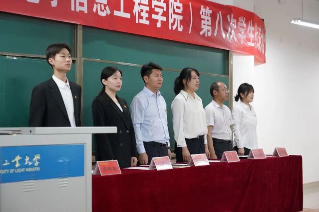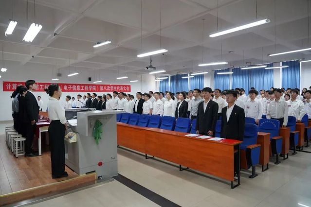 6月10日上午,计算机与通信工程学院(电子信息工程学院)在计算机楼217会议室顺利召开第八次学生代表大会。学院党委副书记王艳军、团委书记孟牒、研究生管理办公室主任赵进超、科级组织员刘晏男、专职辅导员、校学生会主席团成员周鹏翔以及班级代表156人参加本次大会,会议由团委委员苗赵阳主持。