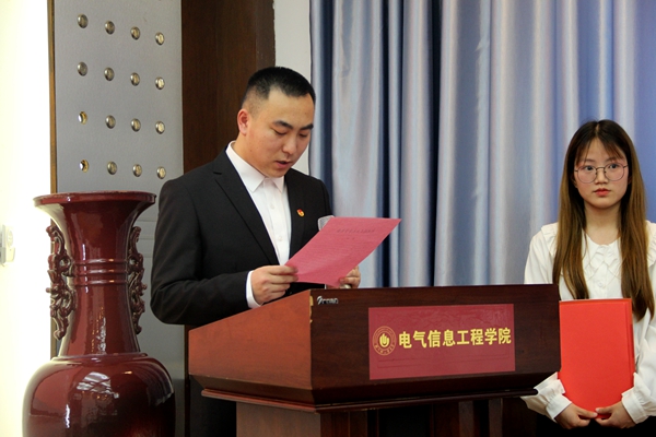 校学生会主席团周志奎同学致贺词,肯定了电气信息工程学院学生会在去年取得的成果,强调了深入贯彻落实学生组织改革政策的重要性以及培养学生会各部门之间协调发展共同进步的发展模式。