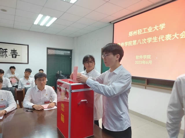 与会代表审议并通过了《郑州轻工业大学软件学院学生会选举办法(草案)》,表决通过了参加校学生代表大会代表的候选人,选举产生了新一届郑州轻工业大学软件学院学生会主席团成员。在圆满完成各项议程后,伴随着《中国共产主义青年团团歌》,大会顺利闭幕。