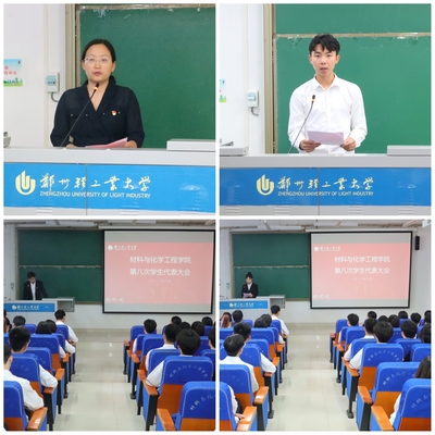 参会代表分别审议通过《郑州轻工业大学材料与化学工程学院学生会工作报告》、《郑州轻工业大学材料与化学工程学院学生代表大会换届选举办法(草案)》,差额选举出新一届郑州轻工业大学材料与化学工程学院学生会主席团成员。