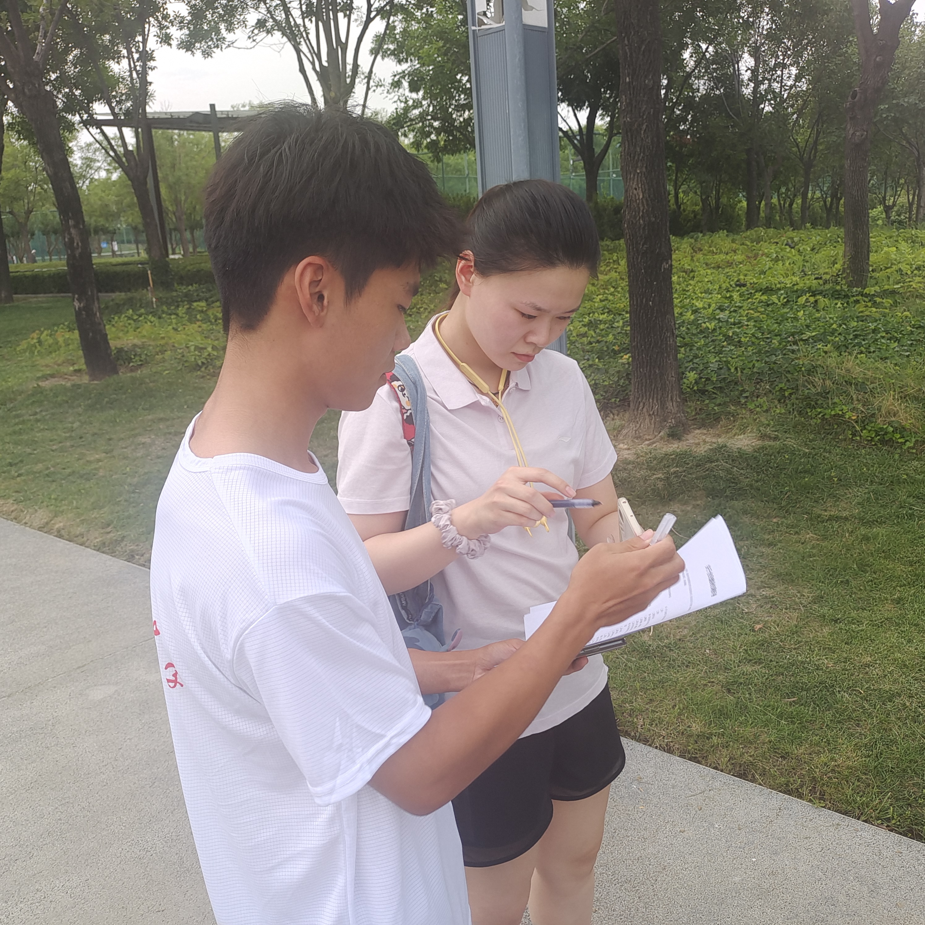 最后,队员们来到了龙湖全民健身中心场馆旁边的室外运动场地,通过问卷调查的方式对参与体育锻炼的女性进行了调研。在调研中发现女性在体育参与中也偏少,很多女性希望得到社会体育指导员的科学指导。