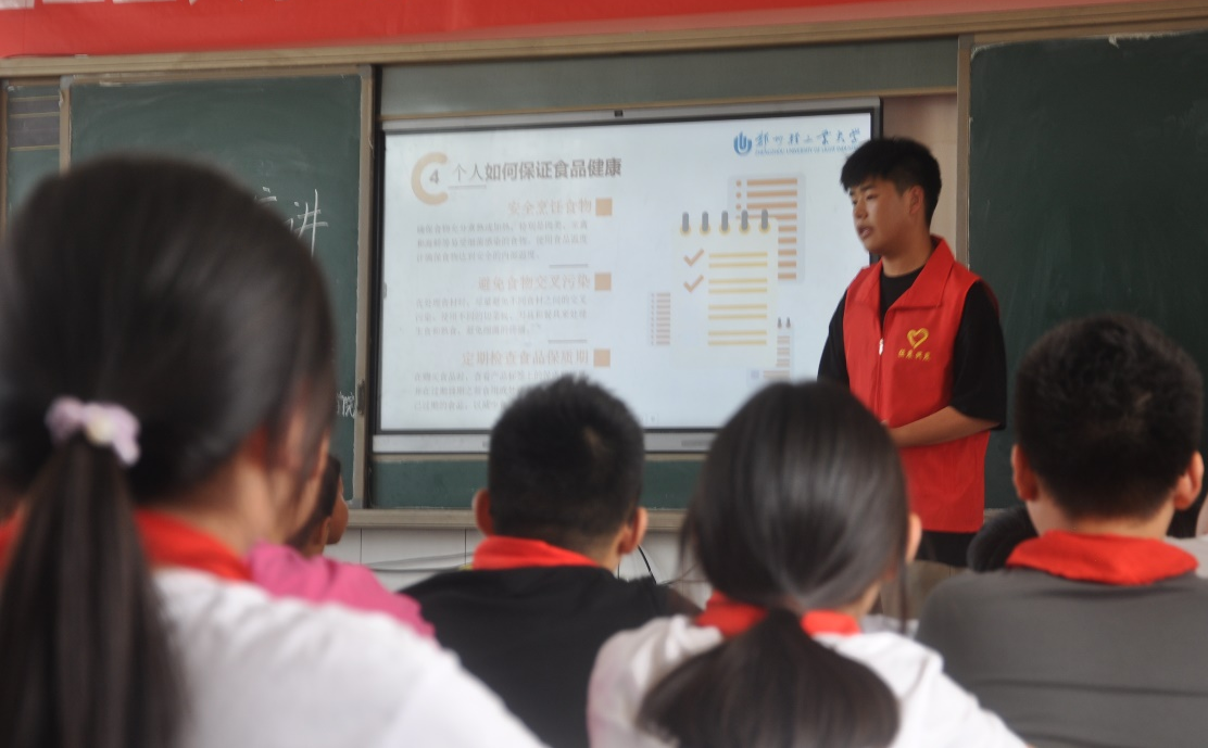 “大家喜不喜欢吃辣条?大家知道辣条的原料是什么吗?辣条到底有没有营养?”食品与生物工程学院“食品安全宣讲团”来到清水河乡实验小学,利用学生课余时间在教室内开展了一次妙趣横生的食品安全主题宣讲。宣讲团队员从当前小学生们最爱吃的“辣条”入手,向同学们生动的说明了辣条中存在的食品添加剂的安全问题。宣讲队员从食品安全的重要性、食品安全的标准、食品对我们的影响、如何保证食品健康等方面为小朋友们讲述食品安全的知识。在普及食品安全知识的同时,也向小朋友们抛出有趣的问题,小朋友们纷纷积极踊跃地抢答。