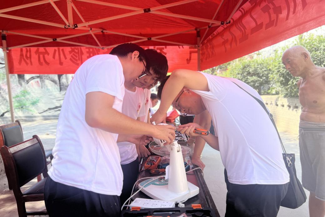 电气信息工程学院“阳光电气”家电义务维修小分队是一支持续开展三十多年家电维修下乡的实践小分队,在清东村村部前,张贴了整齐的横幅和宣传标语、搭建好家电维修平台,队员们一一对送来的故障家电进行信息登记、损坏原因检查、故障原因记录、清理维修等检修步骤,用真诚的态度解答村民的疑问。在维修家电的同时,实践小队还运用自己的知识为村民普及了日常家用电器的基本常识和原理。截止到/截至到活动结束,队员们共给村民们维修了电视机、电风扇、热水壶、电磁炉等各种故障家电五十余件,维修成功率达82%。