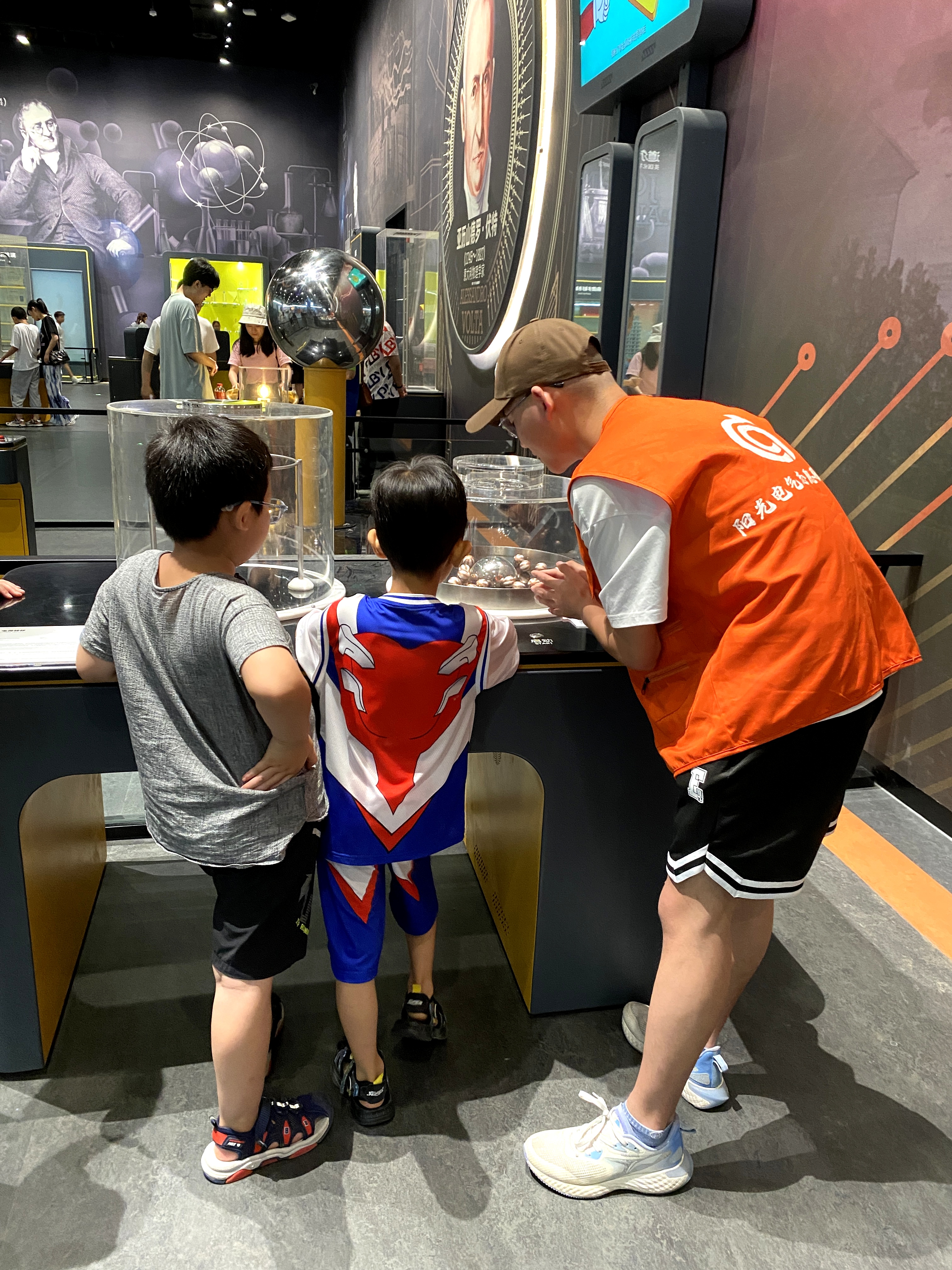 早上八点,“机器人工程师小队”从学校出发,经过两个小时的车程到达河南省科技馆新馆,开启了本次社会实践活动。在这次活动中,团队成员两人一组,以各自专业为导向,结合自身优势分别在“动物家园”“童梦乐园”“创享空间”“探索发现”和“宇宙天文”、“交通天地”“人工智能”“智慧人类”8个展厅为游客提供了生动透彻的讲解工作。这不仅引发了孩子们对人与自然、人与科学的思考,还能培养孩子在探究科学中感悟求真求实、创新奉献的探索精神。苹果为什么往下掉,飞机为什么能飞起来,骑自行车下坡时为什么会有惯性……一个个科学观象,都能通过这些互动设备找到答案。在讲解的过程中,看到孩子们脸上洋溢的笑容和获取知识的兴奋,大家都感到十分开心,即使是辛苦和劳累也在此刻消散了。本次活动中,团队成员积极奉献,不畏艰苦,给初入学海的小同学予以科学的启迪,带去对未知的好奇和探索,为早已离开校园的大朋友重温科学知识的奥秘,体悟国家的强大。